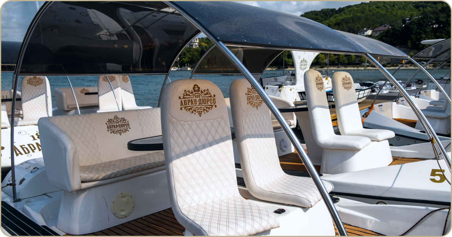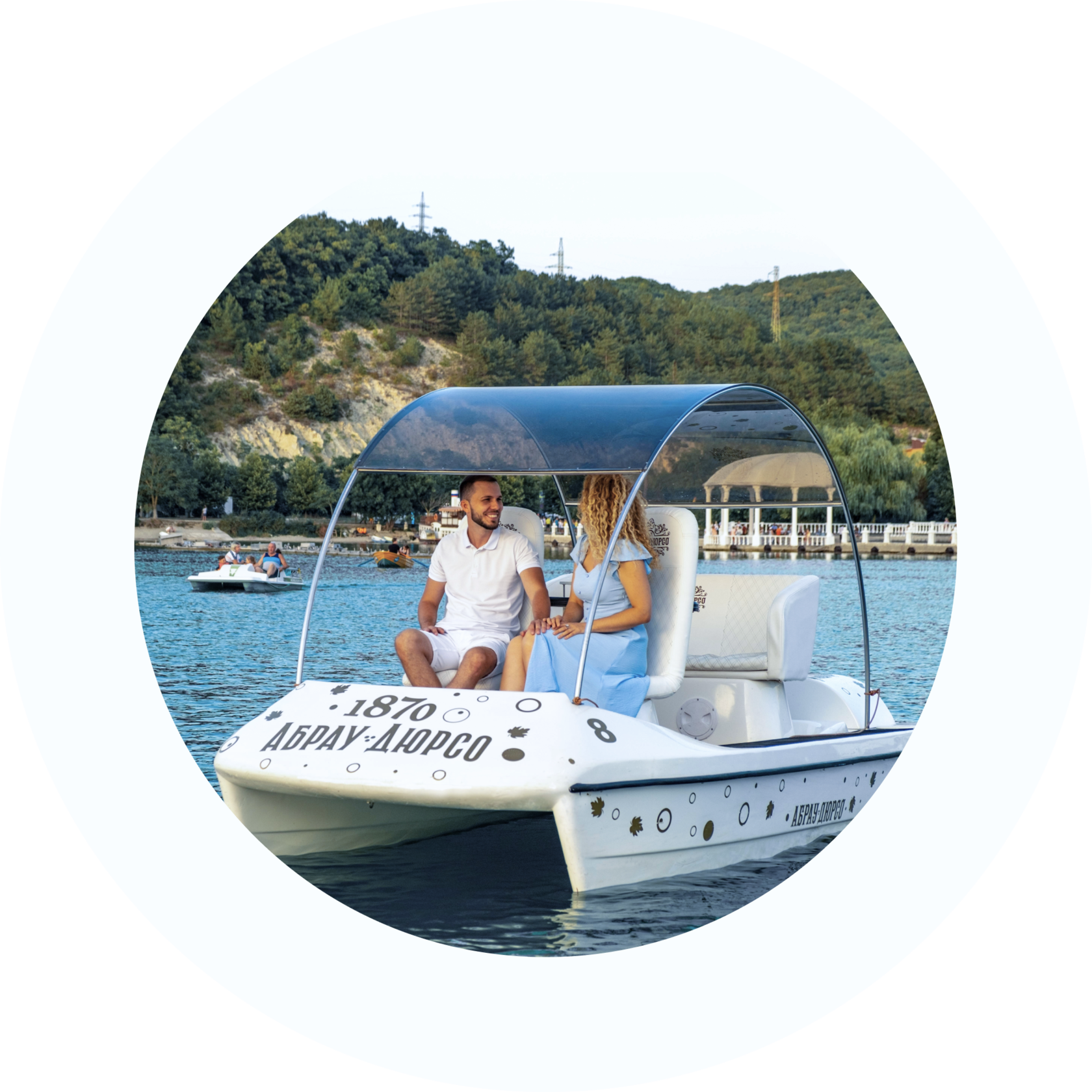 На данный момент на озере Абрау работают 10 моделей BRUT. В высокий сезон все они ходят по озеру от рассвета до заката и не стоят на месте
